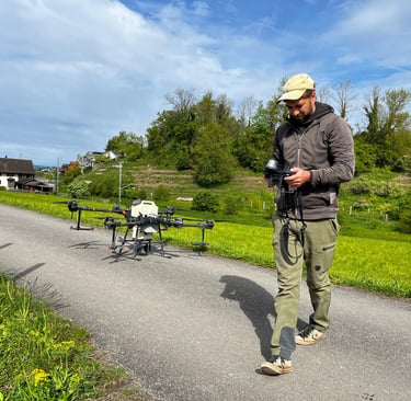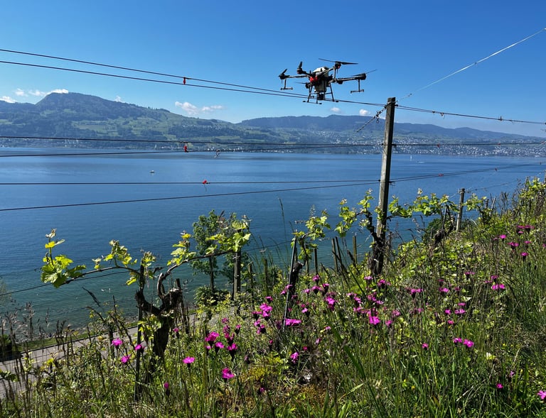 Ich bewirtschafte 2 Hektaren Reben im Auftrag und arbeite nebenbei als Lohnunternehmer mit einer vom BAZL und Agroscope zugelassenen Drohne im Weinbau.